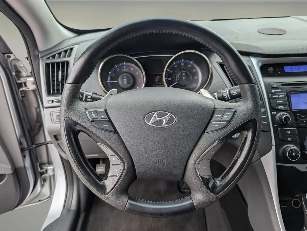 - **Performance and Efficiency**: The front-wheel-drive setup is coupled with a powerful gasoline engine, ensuring smooth handling whether you're commuting to work or heading out for a weekend getaway. - **Safety and Security**: Equipped with advanced safety features such as ABS brakes, traction control, and multiple airbags, the Sonata prioritizes your safety and peace of mind. - **Tech and Entertainment**: Stay connected on the go with Bluetooth connectivity and an AM/FM stereo system that includes a CD player and MP3 capabilities. Enjoy seamless music streaming and phone calls without taking your hands off the wheel. - **Comfort and Convenience**: The Sonata is designed with driver comfort in mind, featuring power windows, keyless entry, and adjustable steering wheel controls, making every journey enjoyable.