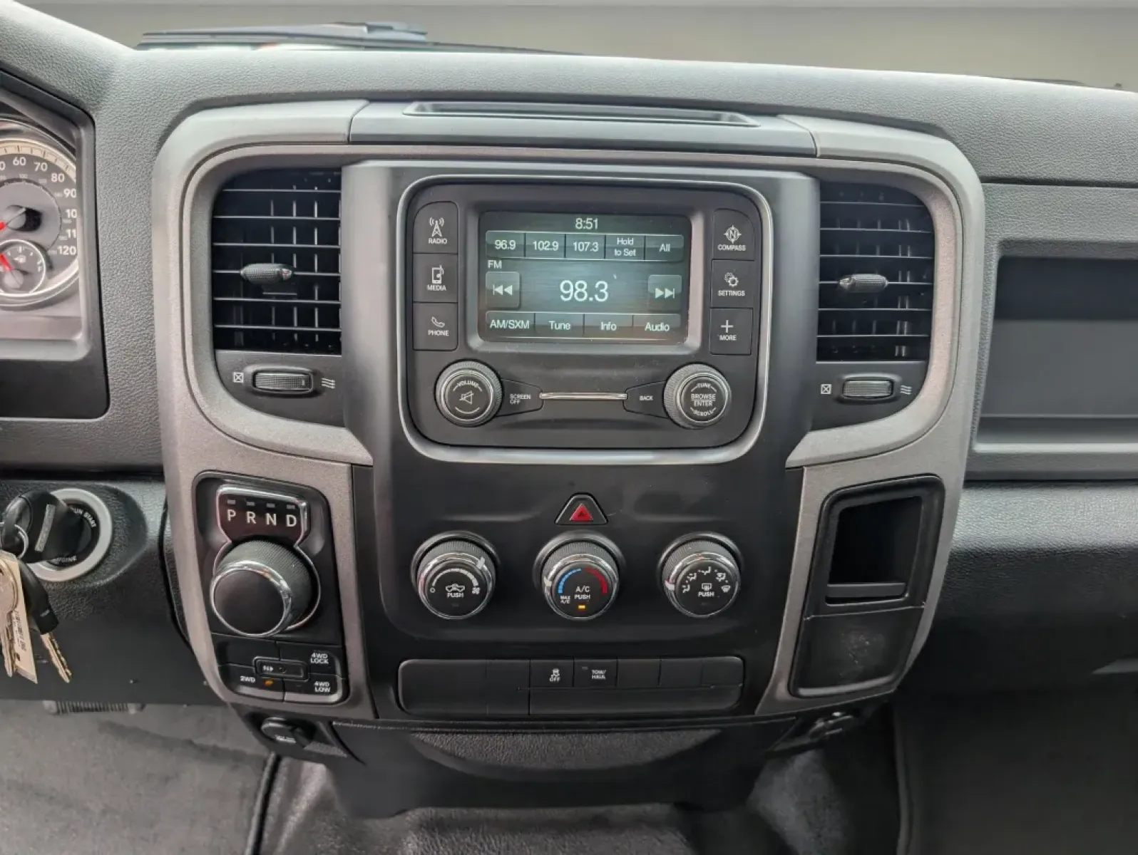 Looking for a vehicle that can adapt to your lifestyle? This Ram 1500 is not only a workhorse but also comes with tech-savvy features like the Uconnect 5.0 system, which includes Bluetooth connectivity and a touchscreen display for seamless control of your media, keeping you entertained on those long drives. Additionally, the SiriusXM satellite radio capability ensures you'll always have something to listen to, no matter your mood.